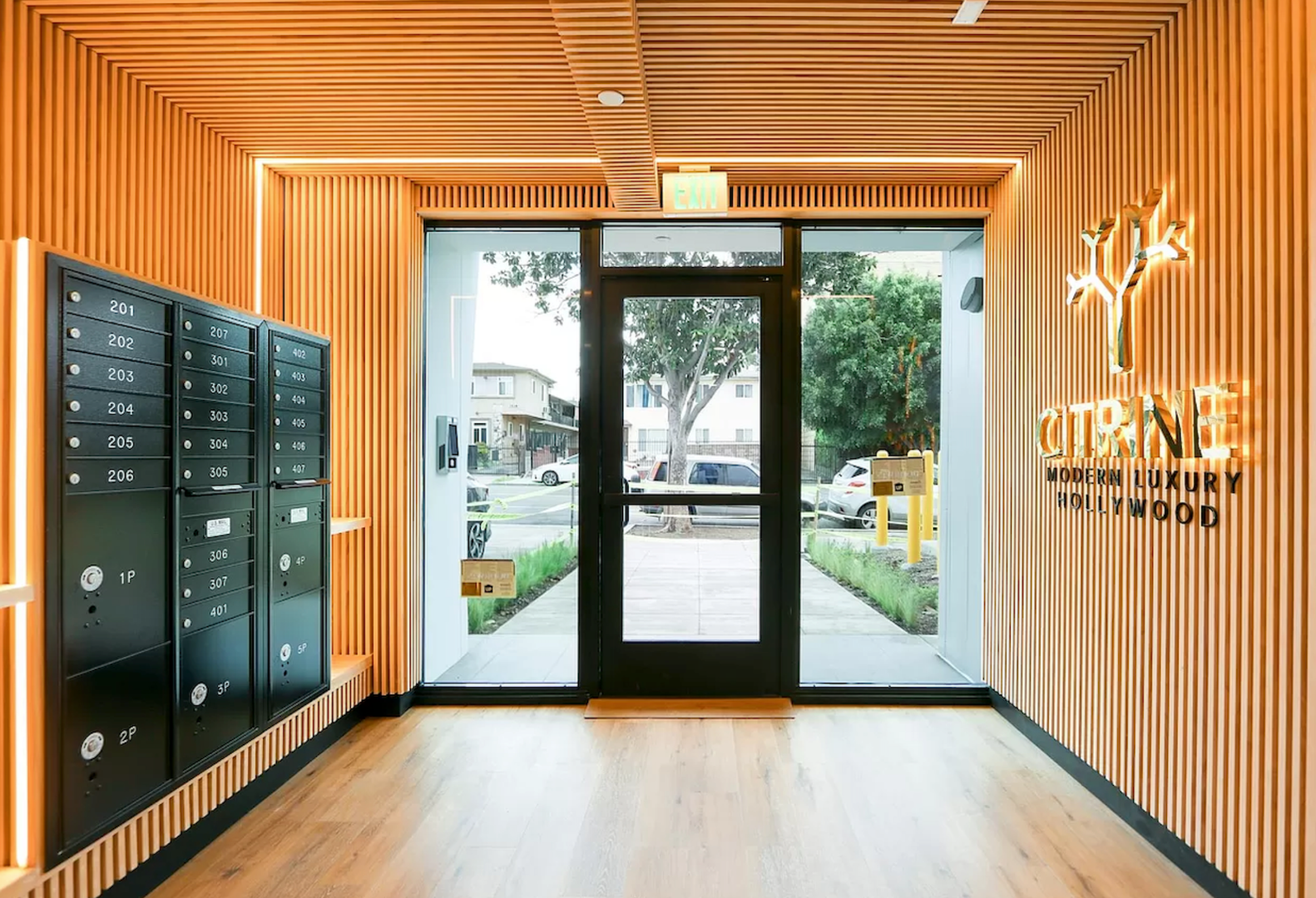 Citrine Hollywood offers two and three bedroom residences appointed with designer finishes and soaring views of the Los Angeles skyline and Hollywood Hills. Designed with open space and modern living in mind, Uniquely situated on a tree lined street between Sunset and Hollywood, this new development is the premier living destination east of the 101. Adorned with white oak floors and doors, modern stone bathrooms, and walnut cabinetry, the different materials meld together seamlessly, promoting light and warmth in each and every unit.